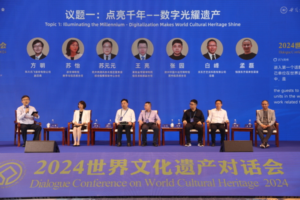 圆桌对话环节,故宫博物院数字与信息部主任苏怡,杭州西湖风景名胜区管委会综合指挥保障中心主任苏元元,秦始皇帝陵博物院信息资料部副主任王亮,扬州中国大运河博物馆图书信息部主任张园,京东方艺云科技有限公司总裁白峰,恒信东方首席创意官孟磊,围绕“点亮千年——数字关照遗产”和“叩问未来——遗产对话永不落幕”议题展开对话,勾勒一幅“科技点亮遗产、遗产光照心灵”的人类遗产美好图景,共绘文化遗产保护、展示和传播的新画卷。