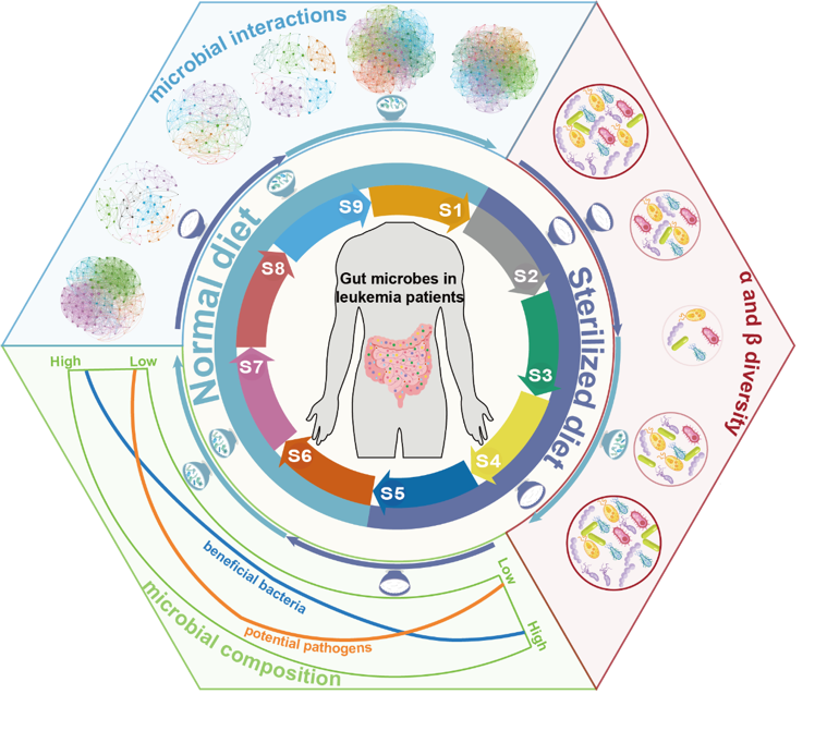 本网讯(资源与环境工程学院 宋立岩)近日,我校资源与环境工程学院宋立岩课题组在崩溃微生物系统微生物生态研究方面取得新进展,相关研究成果以“Sterile Diet Causes Gut Microbiome Collapse of Cancer Patients Post Hematopoietic Cell Transplantation, But Normal Diet Recovers Them”为题在期刊《Advanced Science》上在线发表 (https://doi.org/10.1002/advs.202403991)。安徽大学2023级硕士研究生洪文清为第一作者,安徽大学宋立岩研究员、中国科学技术大学杨舒副教授和孙自敏教授为共同通讯作者,安徽大学资源与环境工程为第一通讯单位。