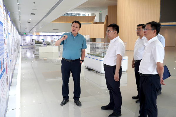 随后,张洪彬来到材料科学大楼,参观学校科研成果,蔡敬民从学校基本情况、办学理念、办学成效等方面向张洪彬一行介绍了学校“双一流”建设情况。