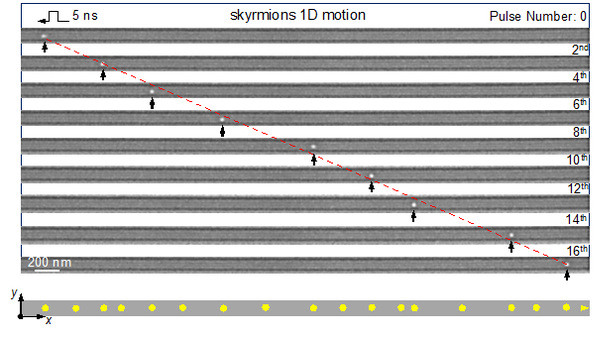 图.单个80 nm磁斯格明子在100 nm赛道中的一维、稳定、高速运动
