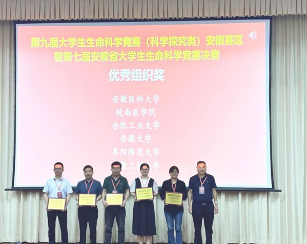 另悉,第七届安徽省大学生生命科学竞赛于7月12日至14日在安徽师范大学举行。本届竞赛参加院校26所,参赛项目数达741项。我校学子在本次竞赛中斩获省级一等奖4项,二等奖6项,三等奖10项。本次大赛我校共有30支队伍报名参赛,获奖率达66.7%。此外,安徽大学荣获“优秀组织奖”。