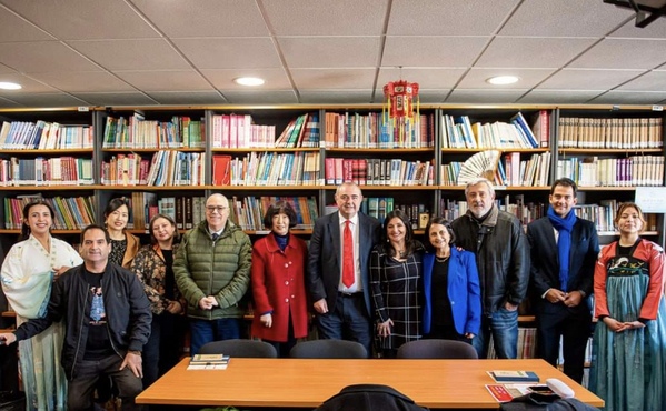 中方院长鲁正凤和孔院教师出席研讨会。近30名高校学者、商务人士和孔院学生现场参与研讨会,活动同时通过线上社交媒体直播,吸引了200余人在线参与。此次研讨会促进了智利、西班牙和巴西等伊比利亚美洲国家研究中国的学者在文化、教育、经济等领域的交流,也为跨地区和跨领域合作提供了新的思路和机会。