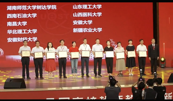本网讯(教师发展中心 刘辉)7月31日,第四届全国高校教师教学创新大赛全国现场赛在电子科技大学落下帷幕,安徽大学获得二等奖2项,三等奖1项,学校荣获优秀组织奖。商学院白琳团队、倪清团队分别获得新文科正高组和新文科副高组全国二等奖,社会与政治学院徐理响团队获得课程思政组全国三等奖。