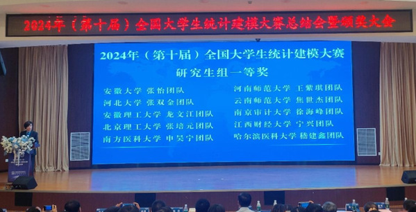 本网讯(大数据与统计学院 张怡)近日,2024年(第十届)全国大学生统计建模大赛圆满落幕。经过激烈角逐,安徽赛区研究生组共4支队伍入围全国总决赛。其中,我校大数据与统计学院入选了两支队伍,由魏峰老师指导的张怡、孙巳玉、王晶茹团队荣获全国一等奖,由陆凤芝老师指导的刘奇林、汪计龙、沈奥露团队荣获全国二等奖。
