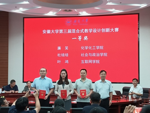 本次大赛面向全校教师,自2024年6月13日启动,分为院级初赛和校级决赛两个阶段。经选拔推荐,共有25个教学团队进入学校决赛,最终评出一等奖3项、二等奖9项、三等奖13项,优秀组织奖3个。化学化工学院廉笑团队、社会与政治学院杜培培团队、互联网学院叶鸿团队获得一等奖;电子信息工程学院朱浩然等9个团队获得二等奖;经济学院葛佳敏等13个团队获得三等奖;化学化工学院、社会与政治学院、互联网学院荣获优秀组织奖。廉笑、杜培培、叶鸿、朱浩然4个团队将代表安徽大学参加第六届全国高校混合式教学设计创新大赛。
