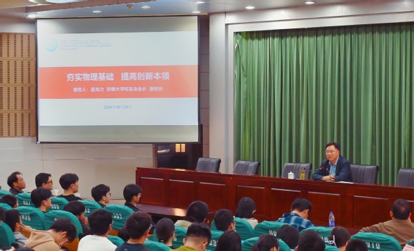 报告会上,匡光力以“夯实物理基础,提高创新本领”为主题,传达学习习近平总书记关于科技创新的重要论述和考察安徽重要讲话精神,向同学们介绍了科技创新在国家发展全局中的重要意义。他分享了个人在安大和海外的求学以及从事大科学装置研究的工作经历,向同学们强调大学学习的重要性和从事科学研究应当具备的基本素质。