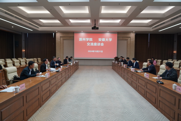 本网讯(融媒体中心 廉多日娜 徐阳)10月31日下午,滁州学院党委书记周旭,滁州学院党委副书记、校长郑朝贵来我校调研。校党委书记虞宝桃出席并讲话,校党委副书记、校长孙长银主持座谈会。