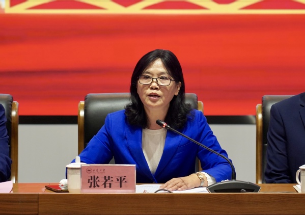 张若平代表省妇联对大会的召开表示热烈祝贺。安徽大学率先在高校建立妇联组织,是贯彻落实习近平总书记关于妇女和妇联工作重要论述的重要举措,是弘扬“四自”精神,推进人才兴皖工程,推动高质量教育高等教育和妇联组织建设高质量发展的必然需要,更是实现习近平总书记要求的“哪里有妇女群众,哪里就有妇联组织”的实践探索。为进一步做好新征程上高校妇女工作,她对学校妇联提出四点希望:一是要强化政治引领,做伟大事业的建设者。二是要促进成长成才,做敢于追梦的奋斗者。三是要深化家庭工作,做文明风尚的倡导者。四是要开展维权帮扶,做温暖之家的铸造者。希望学校妇联充分发挥人才特色和智慧优势,设计更多的深受高知女性欢迎的特色项目和活动,培育打造一批可复制可推广的高校妇联组织建设工作平台,切实把学校妇联组织建设成为党开展妇女工作的坚强阵地,成为广大女性信赖和热爱的温暖之家。
