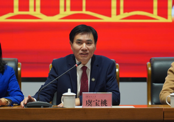 虞宝桃代表学校向大会的胜利召开和当选的第一届妇联主席、副主席、执委们表示热烈的祝贺,向全校妇女师生表示诚挚的问候,向省妇联、省直机关工委、省委教育工委和兄弟高校长期以来对安徽大学的建设改革发展所给予的热情关心和大力支持表示衷心的感谢。在充分肯定工作成绩的同时,他指出,在深入学习贯彻党的二十届三中全会精神和习近平总书记考察安徽重要讲话精神之际,学校成立妇女联合会既是加强高校群团组织建设的务实举措,也是开展知识女性引领、服务、联系的积极探索。就如何发挥妇女联合会及其执委会的作用,他提出三点要求:一是强化政治性,打造忠诚于党的“红色妇联”,在落实立德树人根本任务中发挥妇联的重要作用。二是强化先进性,打造奋发有为的“实干妇联”,在推动学校内涵式高质量发展中发挥妇联的重要作用。三是强化群众性,打造温馨温情的“暖心妇联”,在服务妇女师生成长发展中发挥妇联的重要作用。希望广大妇女师生继续关注、关心、支持安徽大学的建设改革发展,学校将努力做好妇联组织建设,充分发挥妇联作用,为安徽高等教育的发展和现代化美好安徽建设贡献高校的力量。