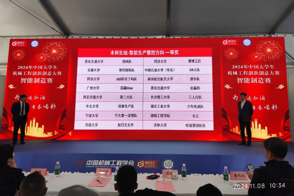 本网讯(电气工程与自动化学院 耿林)11月4日至8日,2024年中国大学生机械工程创新创意大赛第二阶段总决赛在上海举行。电气工程与自动化学院耿林、王龙、谢峰老师指导的队伍经过安徽省赛区选拔,进入到智能制造赛智能生产管控赛项的国赛,最终获全国一等奖(最高奖)。