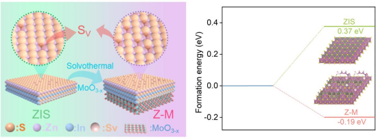 光催化剂中SV调节示意图以及表面硫空位形成能