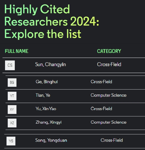 来自全球 59 个国家和地区 1200 多家机构的 6636 名科学家入选2024年度名单。我校孙长银、葛炳辉、田野、遇鑫遥、张兴义、宋永端6人入选2024年度名单。