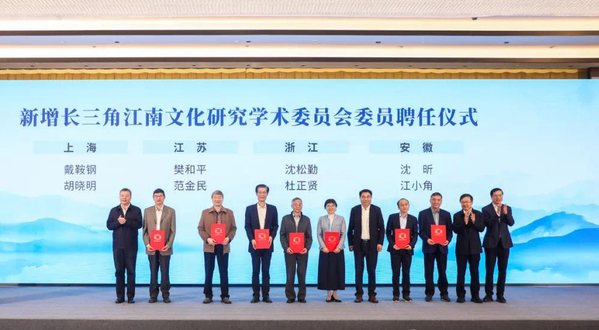 本次会议还举行了新增长三角江南文化研究学术委员会委员聘任仪式。我校沈昕、江小角教授与来自复旦大学、华东师范大学、东南大学、南京大学、杭州师范大学、浙江大学的专家一起受聘为长三角江南文化研究学术委员会新增委员。