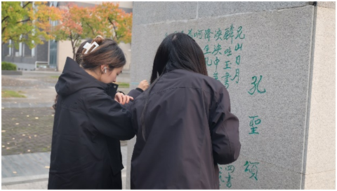 艺术学院美术系2023级绘画专业杜王思佳同学说:“通过这次补色活动,我更加深刻地感受到校园文化就在身边,看着褪色石雕重新焕彩,仿佛见证历史与文化在指尖复苏,我们用自己的双手让校园石雕焕然一新,不仅美化了校园环境,也在劳动中提升了自己的审美和艺术素养。”
