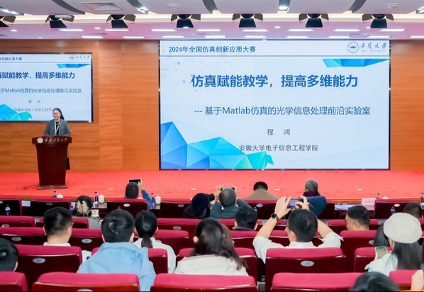 颁奖典礼上,程鸿作为优秀参赛作品代表,详细介绍了参赛作品《基于Matlab仿真的光学信息处理前沿实验室》,并分享了该作品在实际教学中的应用效果和经验,受到与会专家和参赛选手一致好评。