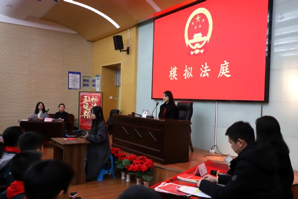 宪入小学,创意普法。12月3日上午,小学普法宣传组来到合肥市翡翠小学,为小学生们带来了一场别开生面的“普法进校园”活动。支部党员田饶首先带领小学生们进行宪法诵读仪式,让小学生们感受到宪法的庄严与权威。他以“高空抛物侵权民事纠纷”为主题模拟真实法庭场景,让小学生们亲身体验法庭审判的全过程。党支部成员围绕宪法、民法典等法律法规开展法律知识竞答,将法律知识与娱乐相结合,让小学生们进一步巩固所学法律知识。翡翠学校副校长史安琪表示:“普法进校园活动加强了大学与小学之间的交流与合作,为共同推进法治教育夯实了基础”。