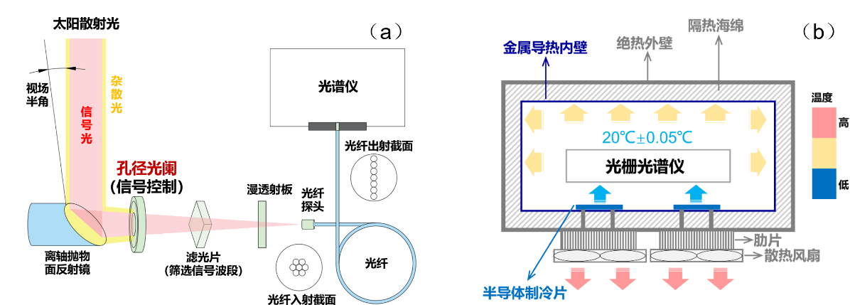 图. (a)高光谱紫外狭缝信号增强部件;(b)高光谱紫外探测器噪声抑制部件