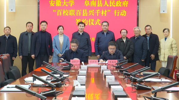 下午,“百校联百县兴千村”行动签约仪式在阜南县政府会议室举行,钱海代表学校与阜南县人民政府副县长祁帅签署协议。