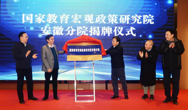 安徽省教育厅发展规划处处长章平、华东师范大学教育学部副主任、国家教育宏观政策研究院执行院长柯政和校党委常委、副校长黄志祥共同为国家教育宏观政策研究院安徽分院揭牌。