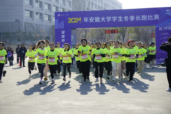 尽管寒风凛冽,但参赛学子们热情似火,个个身姿矫健、步伐铿锵,那一抹抹流动的绿色参赛服,构成了校园里最具动感的风景线。选手们相互加油打气,并肩奋进,将安大学子团结拼搏的精神风貌展现得淋漓尽致。短短十几分钟,便有同学率先冲过终点线,40 分钟后,大部分选手也陆续抵达终点,各院系的同学们纷纷在终点区域合影留念,定格这一荣耀时刻。