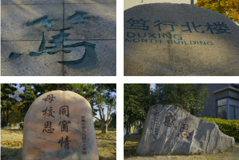 2024年11月22日,安徽大学后勤保障处联合艺术学院2023级绘画专业的师生共同组成了一支修复团队,为磬苑校区的景观石进行了补色修复,使景观石上的书法石刻色彩焕然一新。