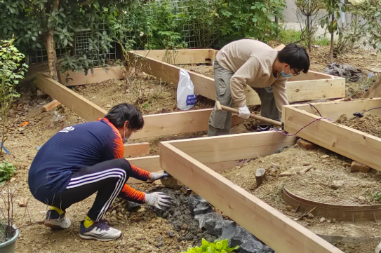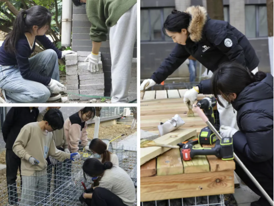 艺术学院同学建设“共享花园”的场景