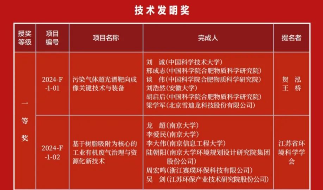 图1 2024年度环境保护科学技术奖奖励名单(部分)