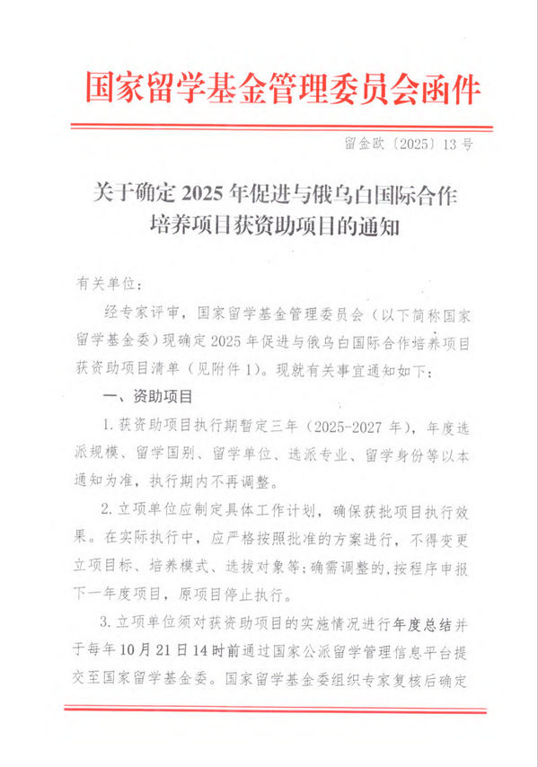 本网讯(国际合作与交流处 王莉)国家留学基金委日前发布2025年促进与俄乌白国际合作培养项目获资助项目通知,我校申报的“智能电磁信息融合的空天地一体化技术创新型人才国际合作培养项目”顺利立项。