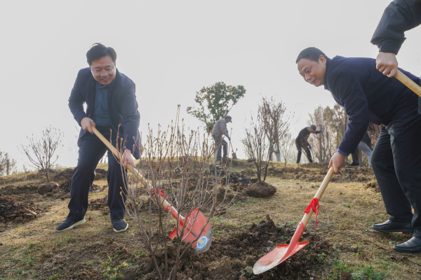 本网讯(融媒体中心 周仲寅 徐红)春风送暖万物新,又是添绿好时节。3月11日上午,在第47个植树节来临之际,学校在磬苑校区琵琶湖南侧开展义务植树活动。校党委书记虞宝桃,校党委副书记、校长孙长银,校党委常委、副校长黄志祥、陈城,校党委常委、纪委书记、监察专员佘延宏与师生代表一道,携手种下树苗。
