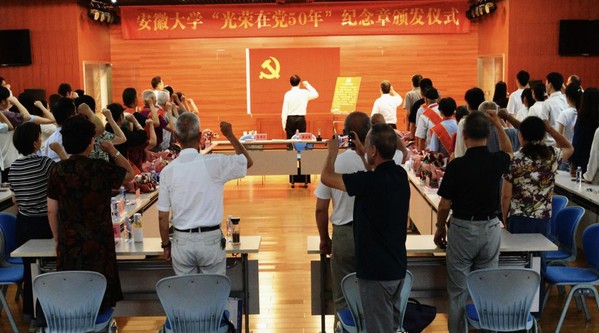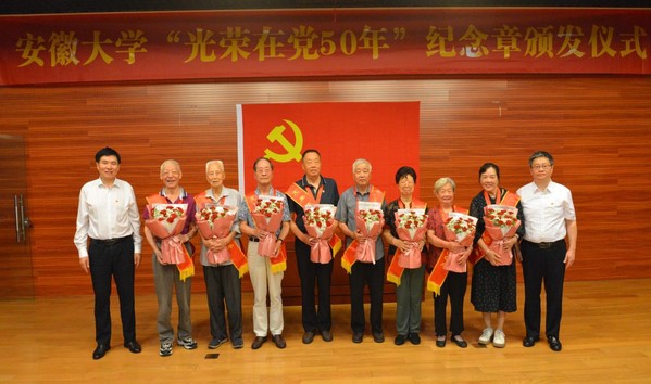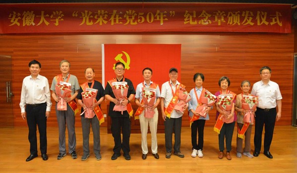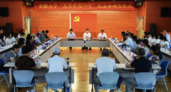 虞宝桃代表学校党委向获颁纪念章的老党员表示热烈的祝贺和崇高的敬意。他指出,安徽大学正处于全面贯彻落实教育强国、教育强省战略任务,奋力实现高质量发展的关键阶段,正朝着建设百年安大的宏伟目标稳步迈进,广大老党员是党和国家的宝贵财富,是学校推进“双一流”建设的重要力量,希望大家一如既往关心、支持学校各项事业发展。