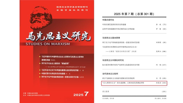 本网讯(马克思主义学院)近日,我校马克思主义学院孙亮洁老师在国内核心期刊《马克思主义研究》发表题为《“后人类资本主义”的生成逻辑、主要内容及其理论评析》的学术论文。