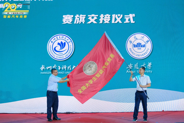 学术副校长吴立建出席了全国大学生智能汽车竞赛二十周年庆典,并作为下一届主办方代表参加了赛旗交接仪式。