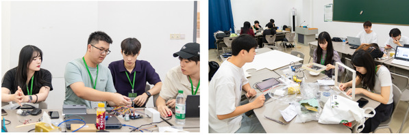 项目期间,所有学生被混合编入18个国际合作团队,以“面向可持续发展时代的智能化装备”为主题开展创新实践。在中日韩三国教师团队的联合指导下,各团队完成了从头脑风暴、创新设计到实物/原型制作的全过程,并在最后进行了精彩的作品答辩与展示。