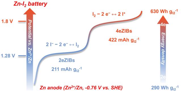 此外,基于两电子I2/I−氧化还原途径的锌碘电池(2eZIBs)已取得显著进展,但其有限的能量密度阻碍了实际应用。激活高价碘物种(特别是I+/I2氧化还原化学)的额外可逆转化反应可实现碘的四电子I+/I2/I−(4eZIBs)转化,从而将能量密度提升至630 Wh kg−1。基于此,团队全面阐述了I2/I−和I+/I2氧化还原化学的基本原理,同时批判性地评估了提升4eZIBs性能的各种策略的优势与局限性。尤为重要的是,从多角度提出了改善I+/I2/I−转化可逆性的具体方法学途径。这些发现旨在为开发先进的金属-卤素电池储能系统提供有价值的见解。