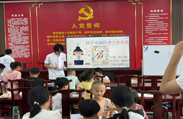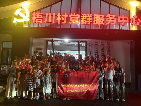2025年暑假期间,经学校工会(乡村振兴领导小组办公室、妇联)、团委和驻绩溪县梧川村工作队组织协调,外语学院、文学院、数学科学学院、物理与光电工程学院、电气工程与自动化学院、经济学院等单位青年学子组建17支团队奔赴梧川村,围绕乡村振兴服务、理论普及宣讲、文化传承创新、教育帮扶资助等主题,接力开展为期一个月的“大手拉小手・快乐暑期陪伴营”活动,奏响了一曲激昂的青春奋进之歌,完成了一堂生动的“行走的思政课”。以青春之力为乡村振兴注入鲜活动能。