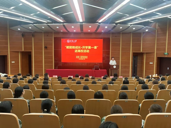 本网讯(融媒体中心)9月17日下午,安徽省妇联“赋能她成长·开学第一课”进高校活动在安徽大学磬苑校区文典阁报告厅举行。安徽省妇联党组书记、主席谢兵,安徽大学党委书记虞宝桃出席并致辞。科大讯飞股份有限公司党委副书记、副总裁任萍萍开讲“赋能她成长·开学第一课”。校妇联执委老师、学校新进女教师代表及2025级女学生代表参加本次活动。