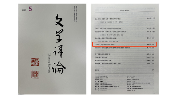本网讯(文学院)近日,我校文学院青年教师李聪聪博士在《文学评论》2025年第5期发表题为《“十七年”旧体诗词中的风景书写》学术论文。