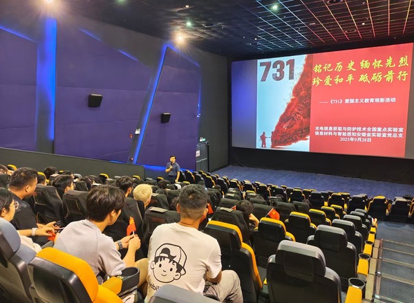 本网讯(信息材料与智能感知安徽省实验室)为深化党史学习教育成果,弘扬爱国主义精神,9月28日下午,省实验室党总支邀请学校马克思主义学院杨帆老师,在电影院组织了一堂别开生面的爱国主义教育党课,引导党员师生铭记抗战历史,汲取奋进力量,筑牢思想根基。省实验室全体党员和党员发展对象及入党积极分子参加此次党课活动。