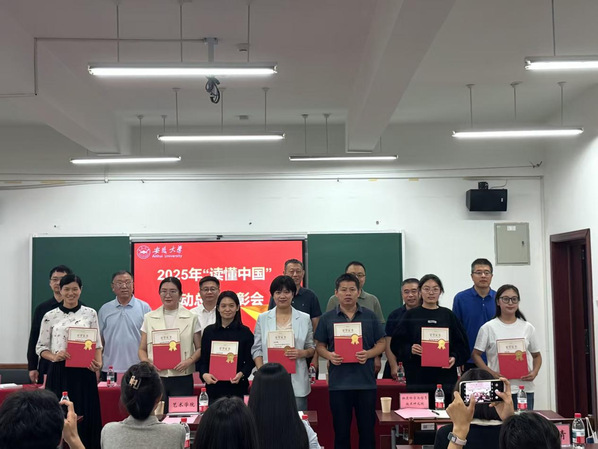 本网讯(离退休工作处)9月30日上午,安徽大学2025年“读懂中国”活动总结表彰会在龙河校区举行。学校关工委负责同志、相关职能部门、受表彰单位负责人和获奖学生代表参加会议,校党委副书记、校关工委主任钱海出席并讲话。会议由校关工委副主任胡小松主持。