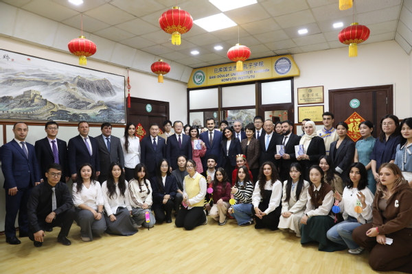 本网讯(国际合作与交流处巴库国立大学孔子学院 王浩强)近日,由杜江峰副部长率领的中国教育部代表团一行到访巴库国立大学。巴库国立大学科学与创新副校长侯赛因·马马多夫(Huseyn Mammadov)、外事副校长沙钦•帕纳霍夫(Shahin Panahov)、学生与公共关系副校长阿利什·阿迦米尔扎耶夫(Alish Aghamirzayev)、校办主任马赫日•皮尔古里耶夫(Mahir Pirguliyev)、国际处处长拉乌夫•哈桑诺夫(Rauf Hasanov)、东方学系系主任艾一丹•卡丹(Aydan Khandan)、孔院中方院长王浩强等在主楼前热情欢迎代表团的到来。阿塞拜疆教育与科学部副部长哈桑·哈桑利 (Hasan Hasanli)、中国驻阿塞拜疆使馆公使衔参赞丁涛等一同抵达。