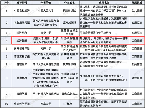 本网讯(商学院)近日,教育部学位与研究生教育发展中心发布了2025年度案例研究典型成果名单,我校商学院叶江峰教授团队的案例成果入选教育部中国专业学位案例中心2025年案例研究典型成果。该成果从知识搜寻和动态能力的双重视角揭示了数字创业的动态演进过程及内在机理,为数字经济时代企业的数字创业提供了理论借鉴和实践参考。叶江峰教授团队在典型案例库建设方面取得的成果,为安徽大学商学院案例方法教学与实践应用研究的融合发展起到了重要推动作用。