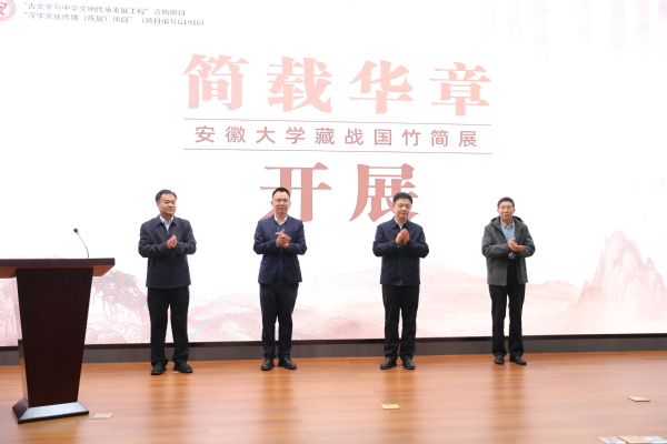 本网讯(汉字发展与应用研究中心 文学院)近日,由中国文字博物馆和安徽大学联合主办的“简载华章——安徽大学藏战国竹简展”在中国文字博物馆开展。安徽大学党委常委、副校长陈城,安阳市委常委、市纪委书记、市监委主任刘胜利,中国文字博物馆党委书记、常务副馆长宁红亮等出席展览启动仪式。安徽大学汉字发展与应用研究中心主任、博士生导师徐在国教授,安徽大学文学院院长、博士生导师程燕教授出席并作报告。
