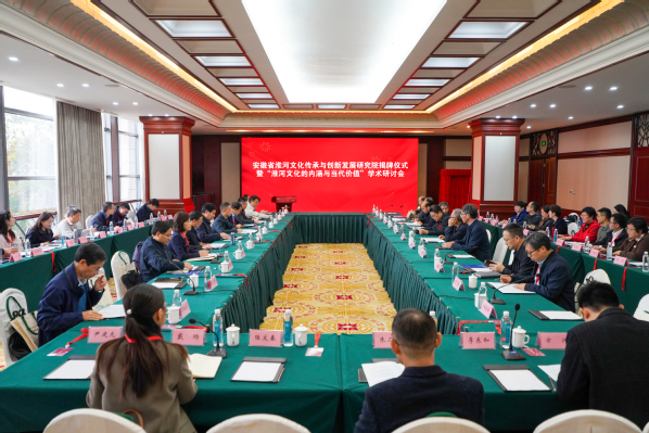 本网讯(融媒体中心 周仲寅 刘倩)10月21日,安徽省淮河文化传承与创新发展研究院揭牌仪式暨“淮河文化的内涵与当代价值”学术研讨会在翡翠湖迎宾馆6号楼三楼多功能厅举行。中国社会科学院学部委员、中国史学会副会长、中国社会科学院古代史研究所研究员卜宪群,第十四届全国政协委员、中国现代文化学会会长、中国社会科学院近代史研究所研究员夏春涛,安徽省淮河文化传承与创新发展研究院院长、教授吴春梅等专家应邀出席。校党委书记虞宝桃出席并致辞,校党委常委、副校长汪海燕出席会议。省委宣传部理论处、《安徽日报》理论部等单位负责同志出席会议。