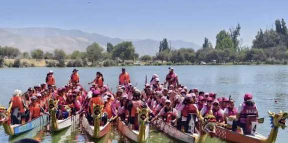 本网讯(国际合作与交流处 圣托马斯大学孔子学院 王小溪)当地时间10月26日,伴随着激昂的鼓点与阵阵欢呼,第三届国际龙舟赛在智利首都圣地亚哥卡伦湖举行。本次比赛由安徽大学智利圣托马斯大学孔子学院(以下简称圣大孔院)与智利乳腺癌康复者赛艇队(Fortale-Senos)联合主办,得到了中国驻智利大使馆的鼎力支持和中国一汽解放国际公司的倾情赞助。本届龙舟赛吸引了来自智利、阿根廷、巴西、哥伦比亚、乌拉圭等国的三百余名运动员参加,规模创历届之最。中国驻智利使馆文化处主任许韵哲、卡伦湖所在地——普威特阿尔托市市长布拉沃(Italo Bravo)、语合中心拉丁美洲加勒比地区中心主任罗伯特·拉方丹(Roberto Lafontaine)、圣托马斯大学健康学院院长索丽斯(Andrea Solís)、科学学院院长安嘉文(Carmen Espoz)、圣华金(San Juaquín)和普恩特阿尔托(Puente Alto)等分校的校长、圣大孔院中外方院长宋筱蓉和李莲(Lilian Espinoza)等嘉宾共同出席了此次活动。现场吸引近500人观看比赛。