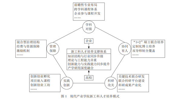 为破解高校“供给侧”与产业“需求侧”的错位,教育部、工业和信息化部等于2020年联合发布《现代产业学院建设指南(试行)》,提出建设由高校与政府、行业、企业、科研机构等多方共建共享的新型产教融合平台——现代产业学院。该模式以服务战略性新兴产业为核心,强调产教深度融合和协同创新,全国首批50家国家级现代产业学院的建设已显示出其在工程教育范式转型中的重要作用。然而,如何结合地方高校资源禀赋与产业基础,形成本地特色、可持续发展的建设模式,仍需深入研究。