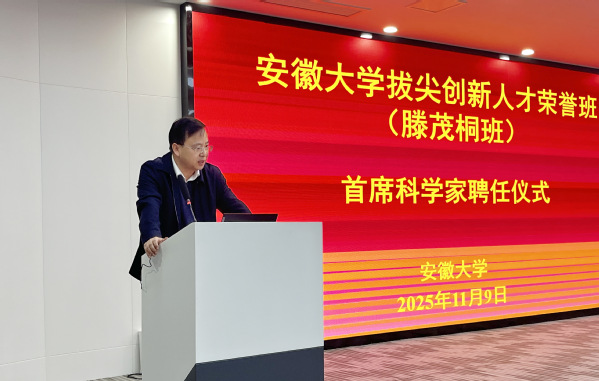 本网讯(文典学院 教务处 经济学院)11月9日上午,安徽大学拔尖创新人才荣誉班(滕茂桐班)首席科学家聘任仪式在经济学院会议室举行。对外经济贸易大学全球创新与治理研究院(教育部战略研究基地)执行院长吕越教授受聘为首席科学家。校党委常委、副校长黄志祥出席并讲话。经济学院院长江永红教授主持聘任仪式。
