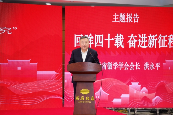 开幕式结束后,“安徽省徽学学会成立四十周年”主题报告举行,由安徽大学徽学研究中心主任、省徽学学会副会长周晓光教授主持。安徽省徽学学会会长洪永平作题为“回眸四十载 奋进新征程”的主题报告。报告全面介绍了安徽省徽学学会自1985年初创到2025年成立四十周年的发展历程、工作成就与未来规划。
