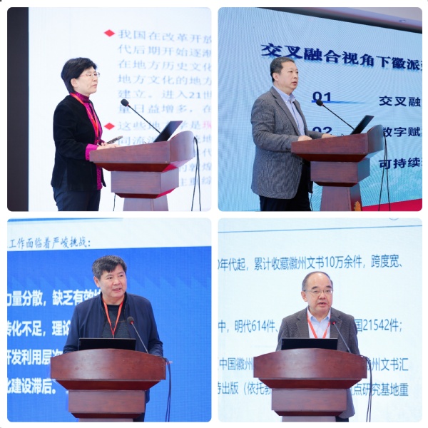主题报告结束后,安徽师范大学原党委副书记、副校长,淮南师范学院原校长,省徽学学会副会长李琳琦教授主持主旨演讲。北京联合大学北京学研究所教授张宝秀作了题为《地方学服务地方发展的理论与实践:以北京学为例》的报告,合肥工业大学教授陈刚作了题为《交叉融合视角下徽派建筑保护传承利用的再思考》的演讲,淮北师范大学教授余敏辉宣讲了题为《深化徽学研究赋能文旅融合——为文化强省与旅游强省建设注入新动能》的报告,黄山学院张小明教授作了题为《黄山学院徽学研究进展与未来发展》的演讲,安徽大学徽学研究中心研究员陈瑞作了题为《宋元时期徽州宗族义庄与义庄规约研究》的报告,中共黄山市委党史和地方志研究室原调研员翟屯建作了题为《汉越文化融合在徽州文化发展中的作用》的报告,安徽中医药大学周亚东教授作了题为《推动新安医学传承创新发展》的报告,安徽师范大学历史学院教授梁仁志作了题为《从徽州府物产会看清末新政在地方的实施——兼论作为“样本”的徽州》的书面报告。