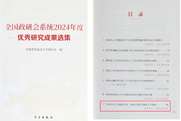 该研究成果通过系统梳理2024年以来引发广泛关注的舆情议题与热点事件,全景式呈现网民社会心态的整体态势,深度剖析其背后折射的社会心理结构特征及潜在倾向性问题,并提出具有针对性、指导性的工作建议。