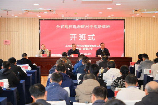 本网讯(继续教育学院)11月24日至28日,2025年安徽省高校选派驻村干部培训班在我校举办,来自全省公立本科高校(含中国科学技术大学、合肥工业大学)及厅属院校的第九批选派驻村干部参加培训。安徽省委教育工委组织干部处处长朱玉华、安徽大学继续教育学院院长周伟斌出席开班仪式。